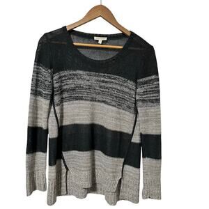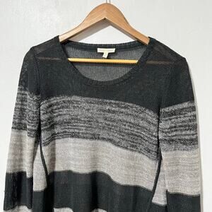 Eileen Fisher Organic Linen Fine Gauge Pullover Sweater Size XS Striped Beach