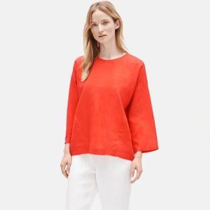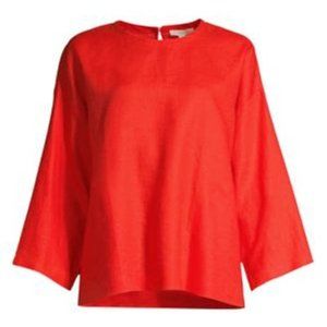 Eileen Fisher ~ Organic linen Geranium jewel neckline Box-relaxed fit top in size Small