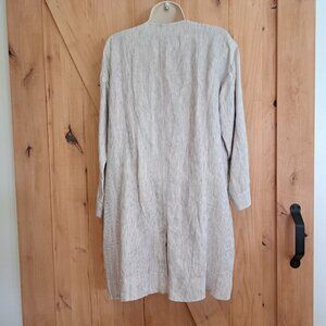 Eileen Fisher Organic Linen Jacket Long Button Front Pockets Striped M Beige