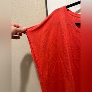 Eileen Fisher Organic Linen Jersey V-neck Tee in Red Boxy Fit Basic Length,Large