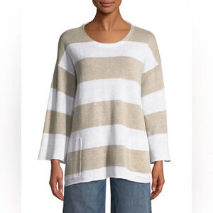 Eileen Fisher Organic Linen Knit Striped Sweater Top Women’s Size Medium