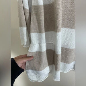 Eileen Fisher Organic Linen Knit Striped Sweater Top Women’s Size Medium. Material tag is cut out but according to website it is 100% Linen and can be hand washed or dry cleaned. Side pockets.