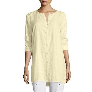 Eileen Fisher Organic Linen Long Button Down Tunic Boho Breathable Size M
