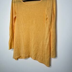 Eileen Fisher Organic Linen Orange Linen Long Sleeve Sweater Top XS