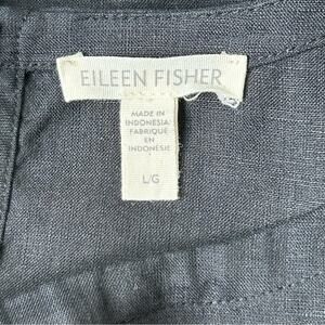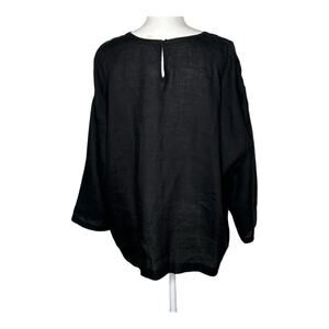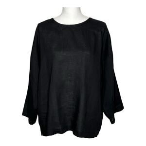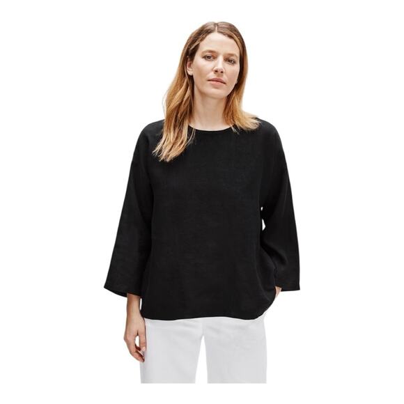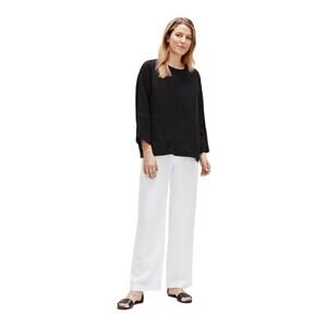 Eileen Fisher Organic Linen Round Neck Box Top L Black