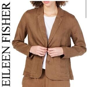 Eileen Fisher Organic Linen Shaped oversized Blazer Pine Needle minimalist L