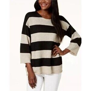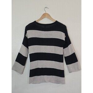 Eileen Fisher Organic Linen Sweater Women Size XXS Striped Beige Coastal Preppy