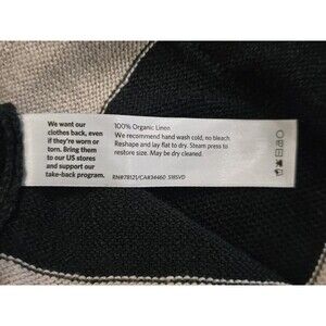 The Eileen Fisher Organic Linen Sweater in size XXS is a stylish and versatile piece perfect for the coastal preppy woman. This striped beige sweater features a crew neck and 3/4 flared sleeves, making it a comfortable and on-trend choice for casual, business, or travel occasions. Made from lightweight organic linen knit fabric, this pullover tunic also includes crochet accents and pockets for added detail and functionality. Ideal for all seasons, this minimalist, sustainable garment is a classic and elevated basic for any wardrobe.