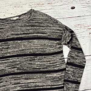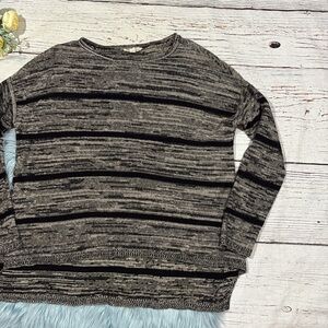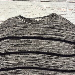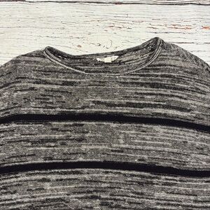 Eileen Fisher Organic Linen crewneck sweater marled black & cream petite fit. This sweater is in great used condition