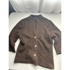 Eileen Fisher Organic Wool Alpaca Merino Brown Knit Button Up Cardigan