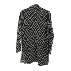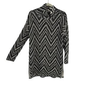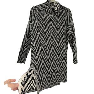 Eileen Fisher Oversize XS Baby Alpaca Tunic Sweater Black White Chevron Mockneck