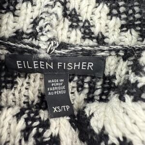 Eileen Fisher Oversizes XS Baby Alpaca Tunic Sweater Black White Chevron Mockneck
