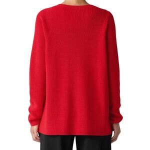 Eileen Fisher Oversized Italian Merino Wool Sweater Shaker Stitch Red Size XS