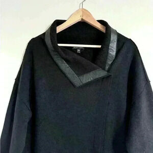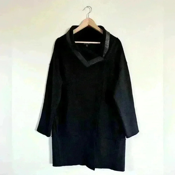 Eileen Fisher Oversized Wool Coat Leather Trim Size XSS