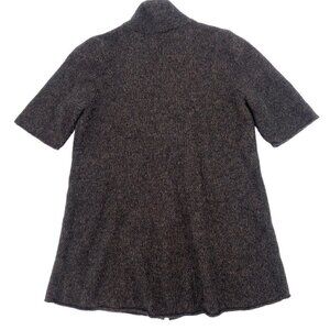Eileen Fisher Womens PM Merino Wool Blend Cardigan Sweater Brown Short Sleeve single button closure. Thick heavy Material. Brown with speckles of lighter shades. No flaws. See pictures for approximate measurements