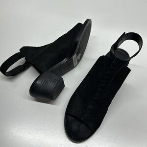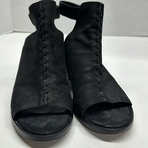 Eileen Fisher Pagoda Heeled Sandals Shoes Open Toe Ankle Strap Suede Black 6