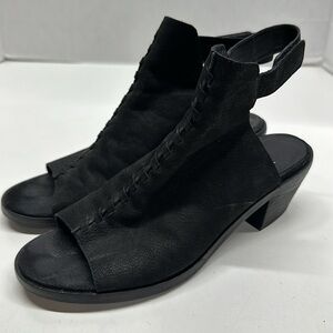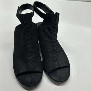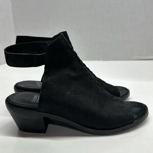 Eileen Fisher Pagoda Heeled Sandals Shoes Open Toe Ankle Adjustable Strap Suede Black 6