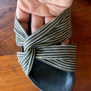 Eileen Fisher Pal Canvas Stripe Slide Black and White - Size. 8