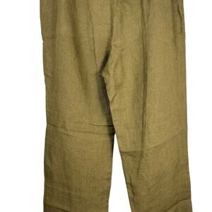 Eileen Fisher Pants Womens Large Olive Green Heavy Linen Straight Leg Natural