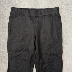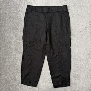 Eileen Fisher Pants Womens Petite Medium Black Organic Linen Cropped Pull On