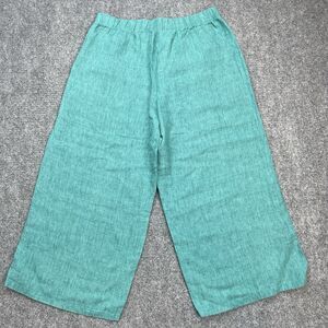 Eileen Fisher Pants Womens Petite Medium. 100% Organic Linen. Wide Leg Pull On Stretch Waist Capri.