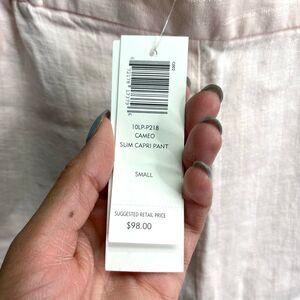 New with Tags Women’s Eileen Fisher Cameo Light Pink Linen Stripe Textured Slim Capri Pants in Size Small