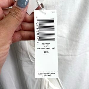 New with Tags Women's Eileen Fisher White Cotton Paper Cloth Fly Front Cropped Pants in Size Small