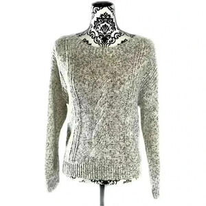 Eileen Fisher Peppered Classic Cotton Blend Cable Knit Boat-Neck Sweater, XS