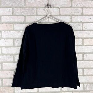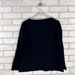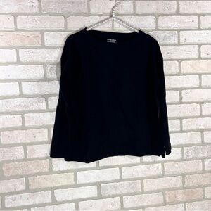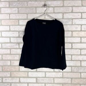 Eileen Fisher Petite Black Crewneck Long Sleeve Viscose Pocket Tee Size PP