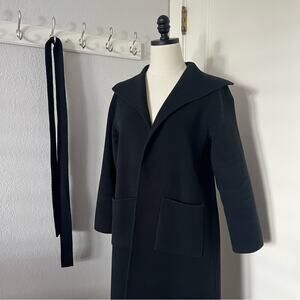 Eileen Fisher Petite Black Wool Cashmere Blend Belted Long Coat