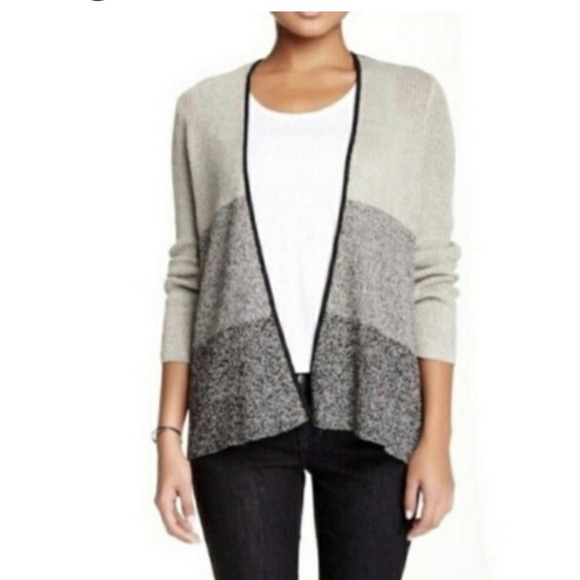 Eileen Fisher Petite Knit Cardigan Color Block Open Front Sweater