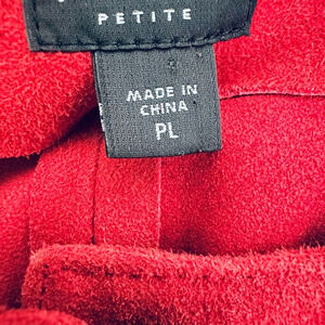 Eileen Fisher Petite Large Deep Rich Red Button Goat Suede Leather Blazer Jacket