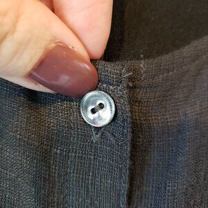 This Eileen Fisher Petite shirt features long sleeves, beautiful delicate buttons (zoom in to see how pretty and dainty they are!) and can be worn buttoned up or open. The color is either a faded black or a dark gray. Great condition - no flaws.