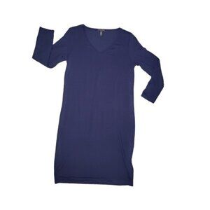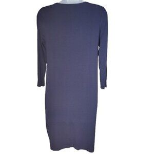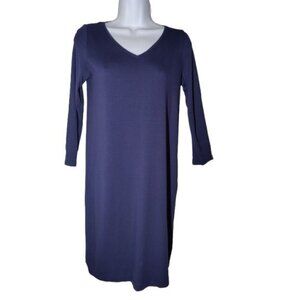 Eileen Fisher Petite Navy Blue V-Neck 3/4-Sleeve Stretch Knee Length Dress PS