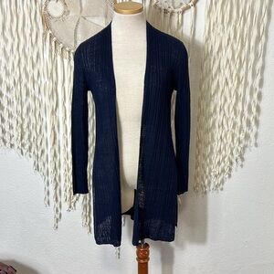 Eileen Fisher Petite Navy Linen Open Front Cardigan Size XS/P