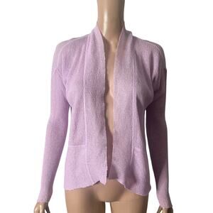 Eileen Fisher Petite PS Cardigan Sweater Lavender Open Front Lightweight Knit
