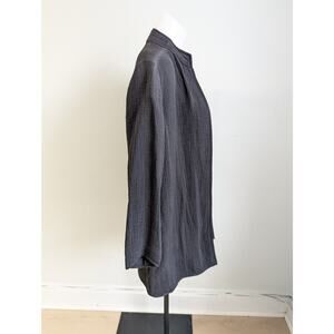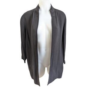 Eileen Fisher Petite Size PP Open Front Jacket Black Silk Blend High Neck Long Sleeves
