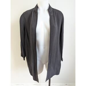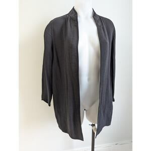 Eileen Fisher Petite Size PP Open Front Jacket Black Silk Blend Long Sleeves