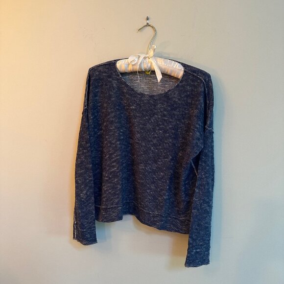 Eileen Fisher Petite Sweater | Organic Linen Cotton Blend | Boxy Fit | Space-Dyed Dark Blue