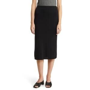 Eileen Fisher Petite Wool Blend Black Skirt Large PL