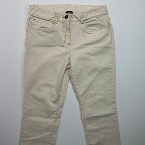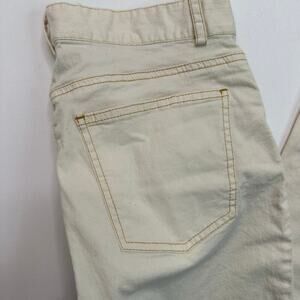 Eileen Fisher Petites Cream Denim Skinny/straight Jeans. Five pocket styling. Zip fly. Cotton/nylon/lycra blend. Cream color with tiny darker flecks, see photos. Made in USA. Womens size Small Petite. Good used condition.