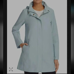 Eileen Fisher Petites Hidden Hood Rain Jacket lightweight blue