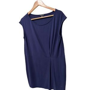 Eileen Fisher Pin Tuck Cap SLeeve Straight Hem Shift Blouse Navy Blue Petite Medium
