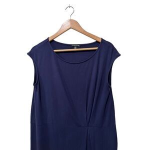 Eileen Fisher Pin Tuck Cap Sleeve Straight Hem Navy Blue Blouse PM MP Capsule
