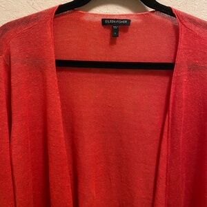 Eileen Fisher Pink Open Front 100% Linen Cardigan Size Large