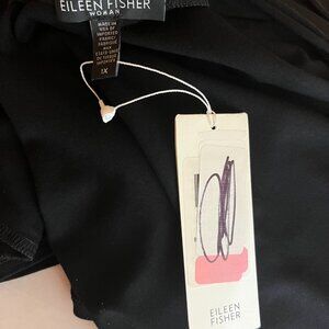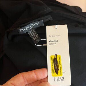 Eileen Fisher Plus Size 1X Black Viscose Jersey Knit Dress Pockets Keyhole