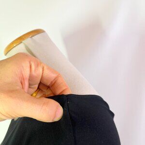 Design: Stretchy knit pullover dress with keyhole opening at upper back. Has side pockets. Unlined.