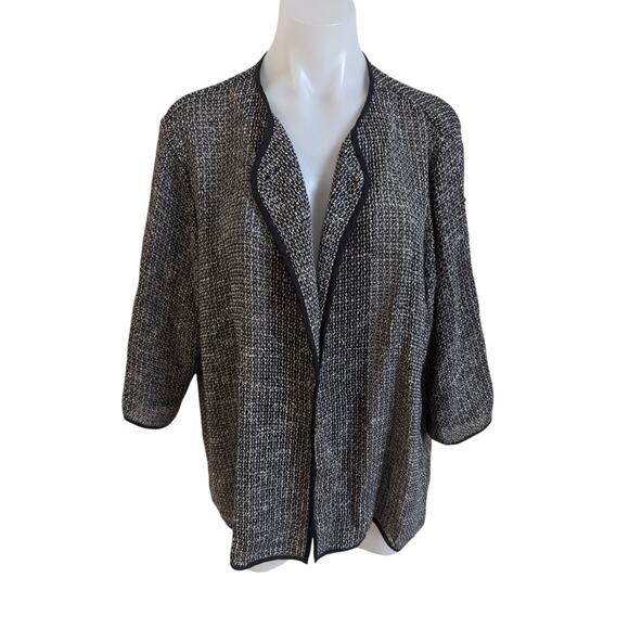 Eileen Fisher Plus Size 1X Textured Open Front Cardigan Black White Navy Cotton