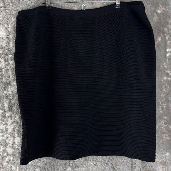 Eileen Fisher Plus Sz 3X Wool Italian Yarn Minimalist Career Skirt Black Pull On