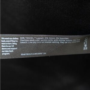 Made in Vietnam. 68% Tencel™ Lyocell/29% Nylon/3% Spandex.